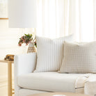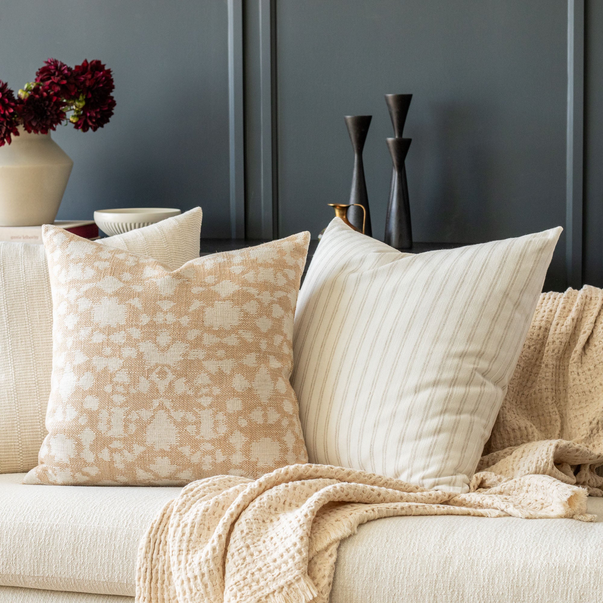 This casual striped pillow in a soft white and sandy beige colour palette is an instant classic. With a luxe-meets-earthy aesthetic and organic texture, this highly versatile and beautiful piece effortlessly delivers a coveted Belgian farmhouse style.