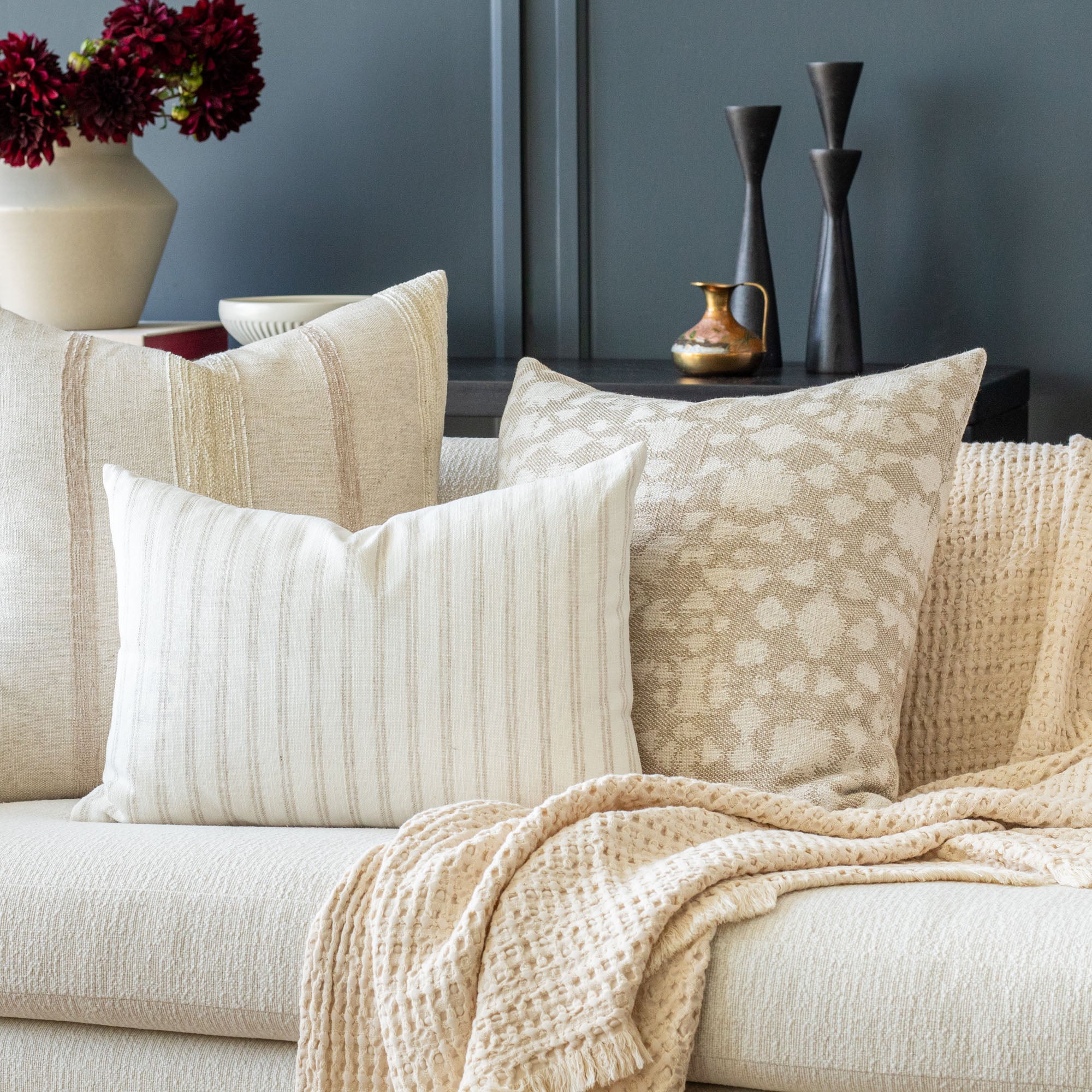 About our pillow inserts: Our premium inserts are filled with a “faux down” microfiber. This down alternative is soft, sumptuous, and holds its shape without flattening over time. It is hypoallergenic and vegan friendly. If you would prefer a traditional down insert, choose the "cover only" option and add a feather insert to your cart separately.
