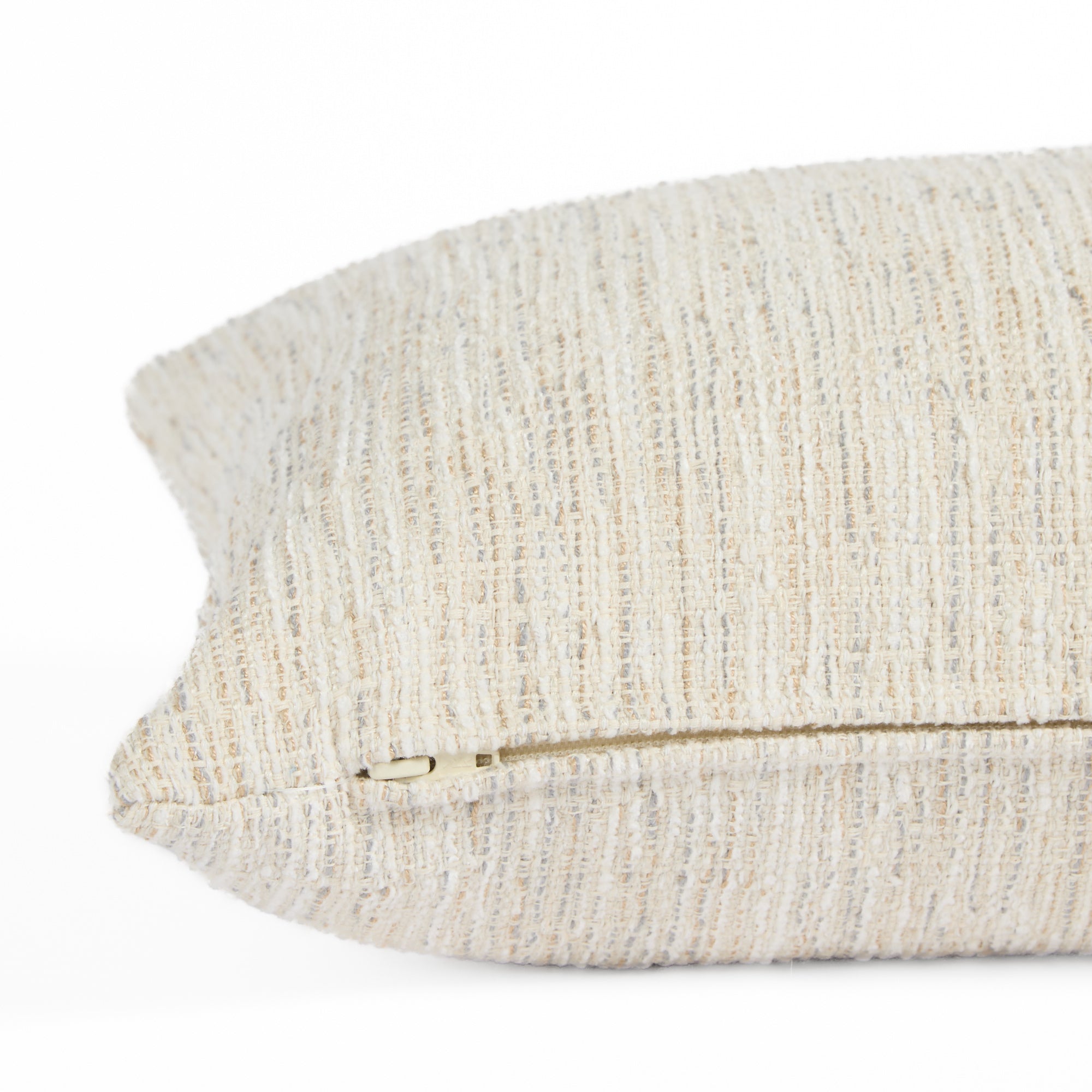 This stunning lumbar pillow has a chunky weave in versatile shades of cream, oatmeal and soft grey. With a beautiful organic quality that is equal parts earthy and sophisticated, this pillow will be right at home in a wide variety of spaces as a perfect layering piece.