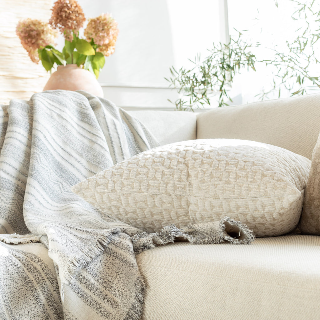 Experience a touch of luxe comfort with this stunning pearly cream pillow. With a plush quilted texture and modern geometric pattern, this beauty will deliver an elegant yet cozy look and feel that will add a layer of style and serenity to your home.
