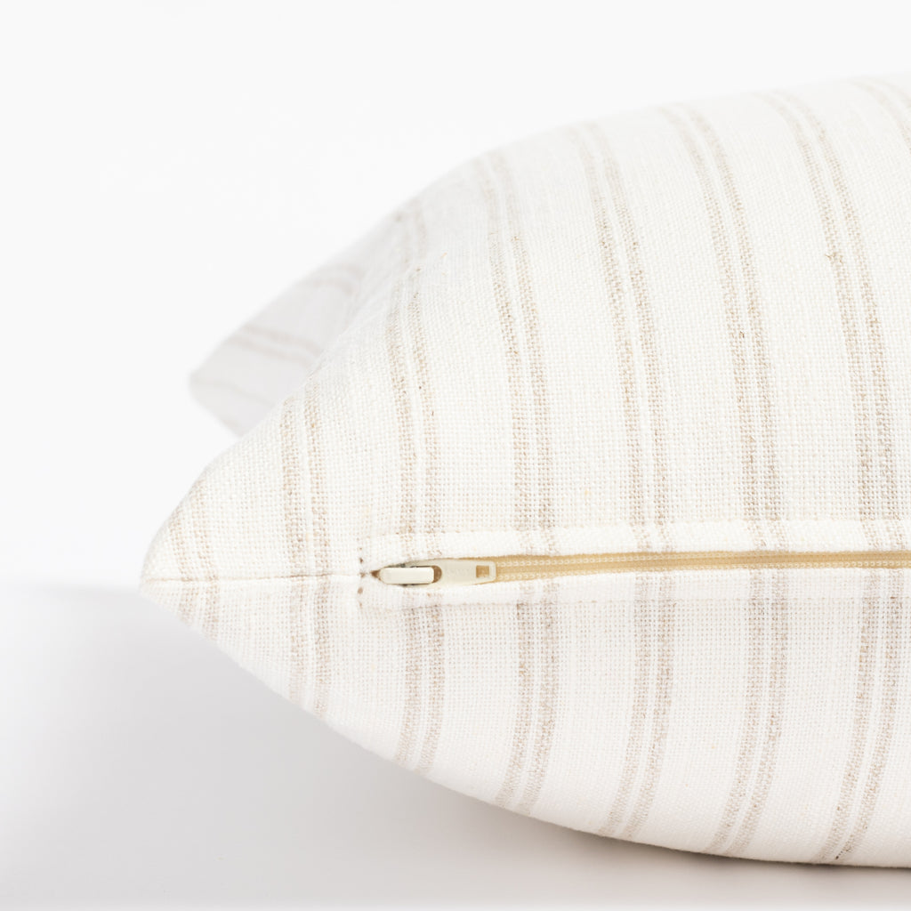 This casual striped pillow in a soft white and sandy beige colour palette is an instant classic. With a luxe-meets-earthy aesthetic and organic texture, this highly versatile and beautiful piece effortlessly delivers a coveted Belgian farmhouse style.
