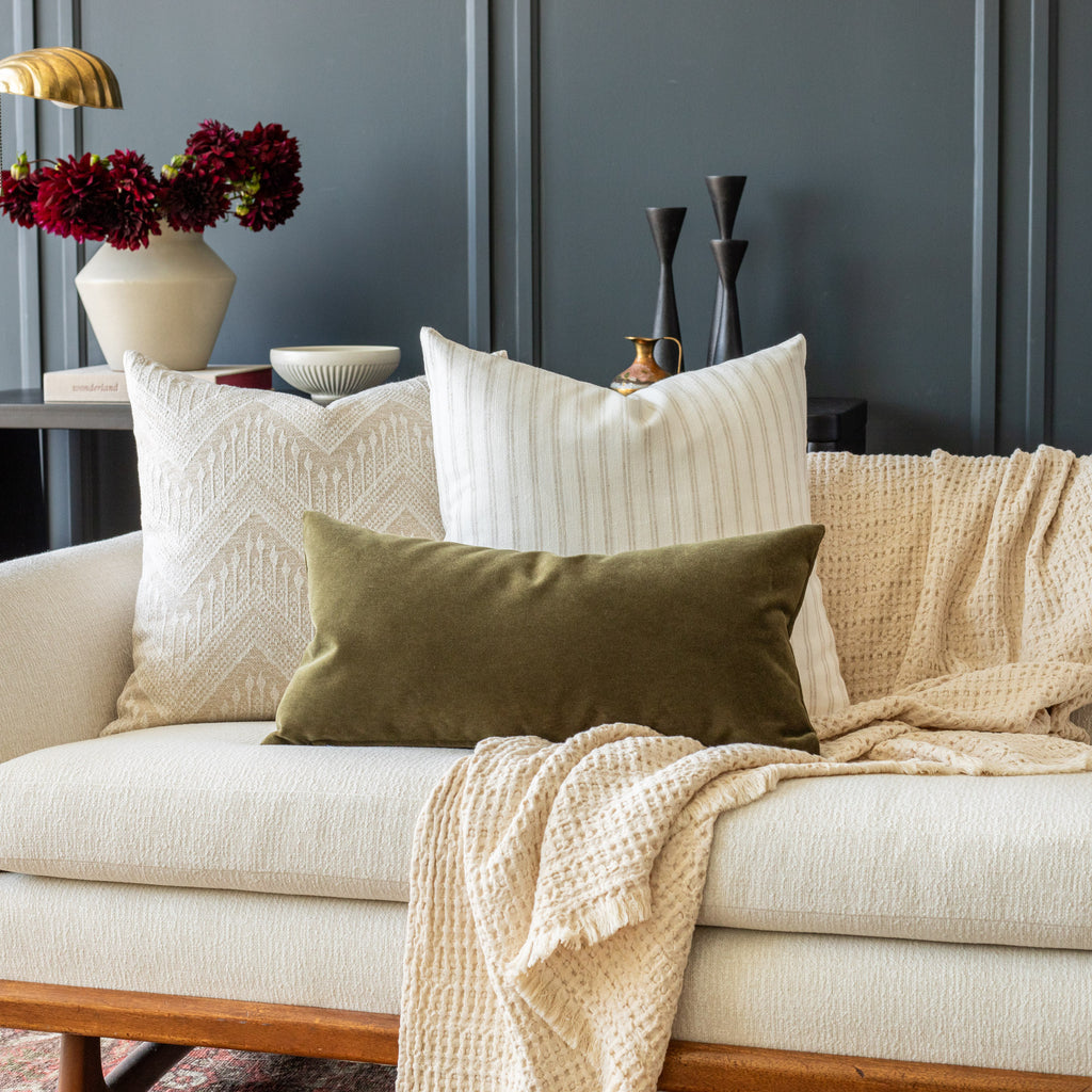 We made this pillow 22" to be a great sink-into-me throw pillow for larger sofas and also as a ‘backer' that will peak above pillows in the forefront. Whether on a sofa or bed, using this substantial pillow is a no-brainer in any pillow pairing scenario.