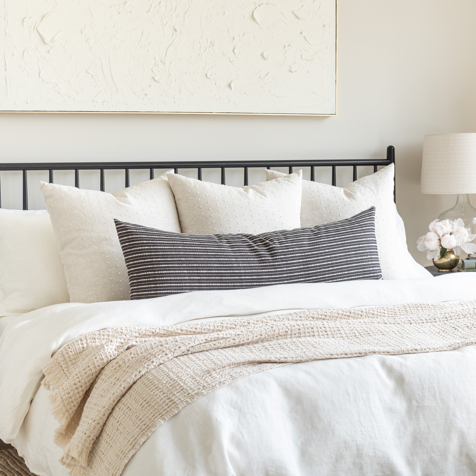 How to use: This lumbar size is extremely versatile and works perfectly placed in front of a larger bed bolster to create a simple but stylish bed pillow-scape; Or, simply place two in front of your own bed pillows for a stand-alone statement. These 12x24 lumbars also work well on larger sofas or sectionals paired with other 20x20 or 22x22 decorative pillows.