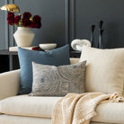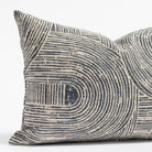 Make a statement with this eye-catching lumbar pillow. Featuring a funky looped pattern of swirling arches in a classic indigo blue and warm grey colour palette, this stunner will add a modern-meets-retro vibe whether layered with other pillows or simply on it's own when placed on a chair.