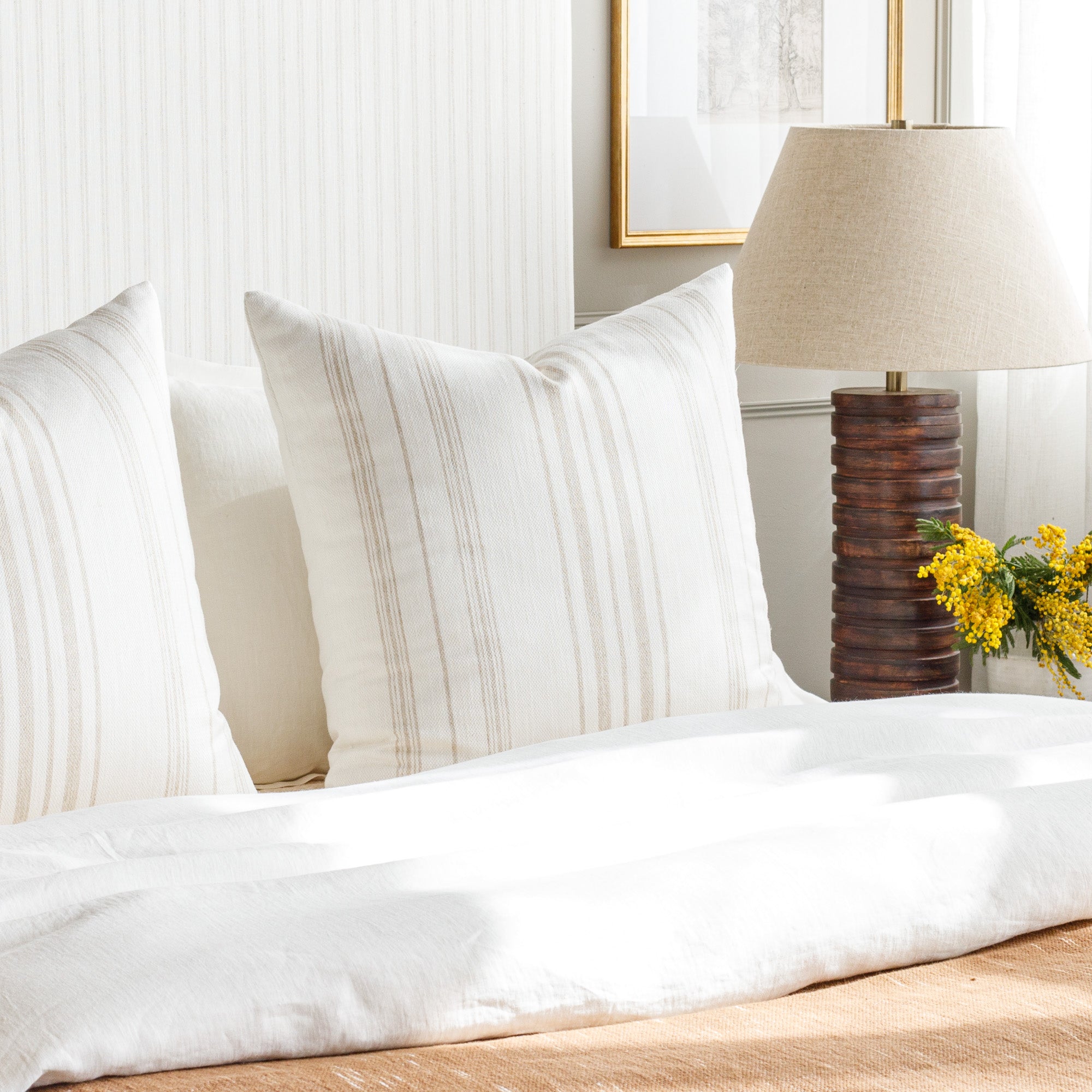 This creamy, linen-toned pillow has an elegant pattern of embroidered dots. Delivering a style that is both light-hearted and sophisticated, the pretty, pearl-like motif is balanced by the neutral ground cloth, that has organic flecks of sandy flax.