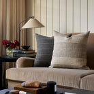 Consider this pillow your go-to, cool weather essential! Featuring a slubby ground cloth with a brushed, wooly texture, this cozy pillow offers a versatile tone of charcoal grey with a hint of earthy brown, creating an organic-meets-modern appeal that will add a touch of handsome elegance to any décor.