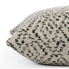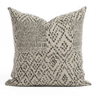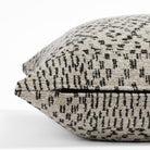 This graphic black and natural pillow features an earthy, ikat-inspired pattern with a dynamic design.