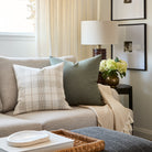 A sage green pillow with a relaxed, linen-inspired look and subtle texture. Its muted, dusty tone brings an effortless organic quality.