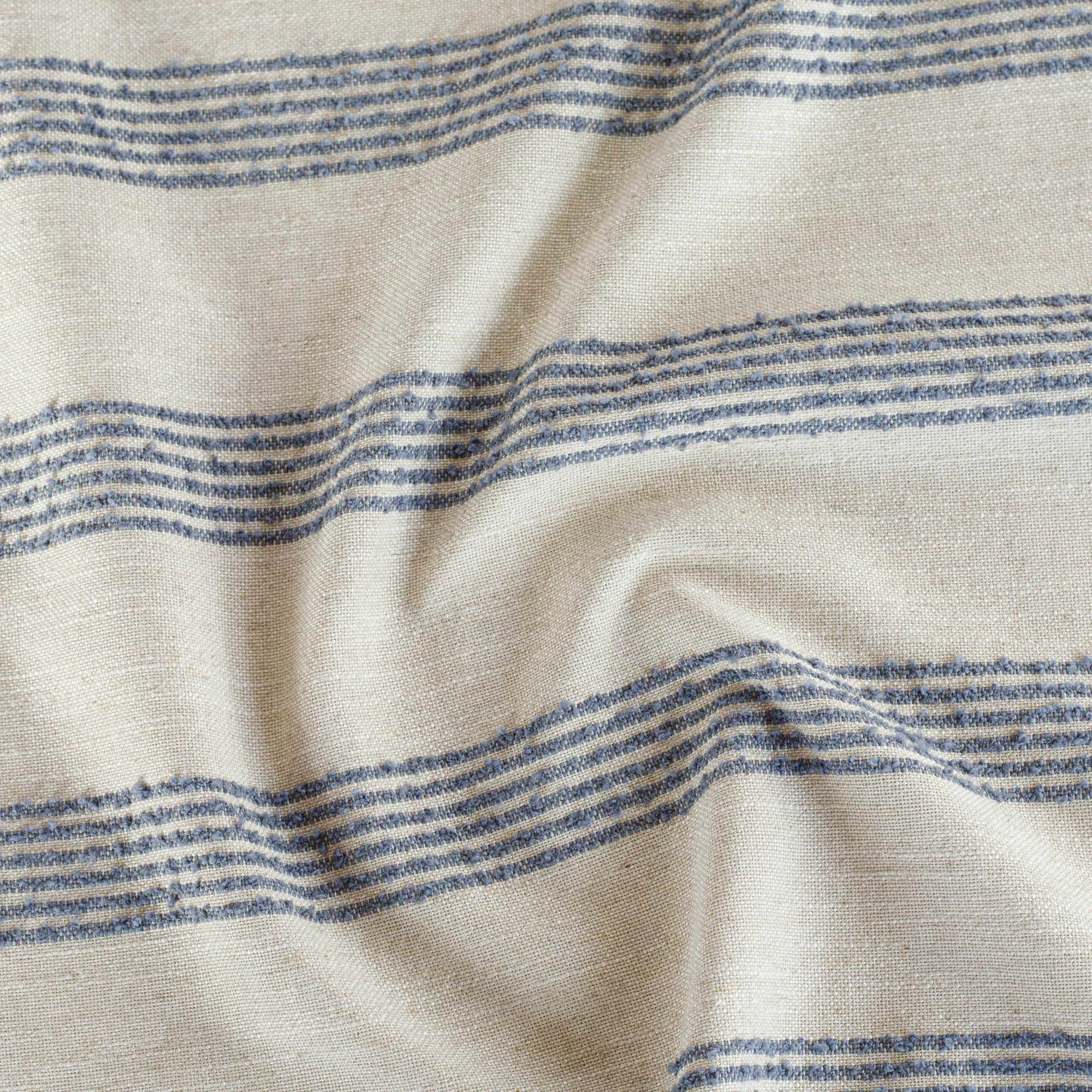 Add a layer of texture to your space with this simply striped multipurpose fabric. In a versatile palette of oatmeal and off white, this material comes to life thanks to the soft loopy stripes that stand out agains the linen-like background. With a classic pattern and hint of whimsy this fabric will help bring an element of interest to your home.