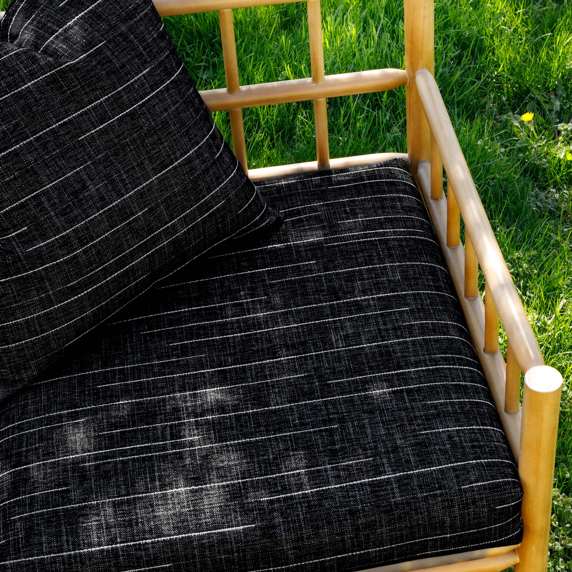 This black indoor/outdoor fabric features white lines with a wabi-sabi vibe.