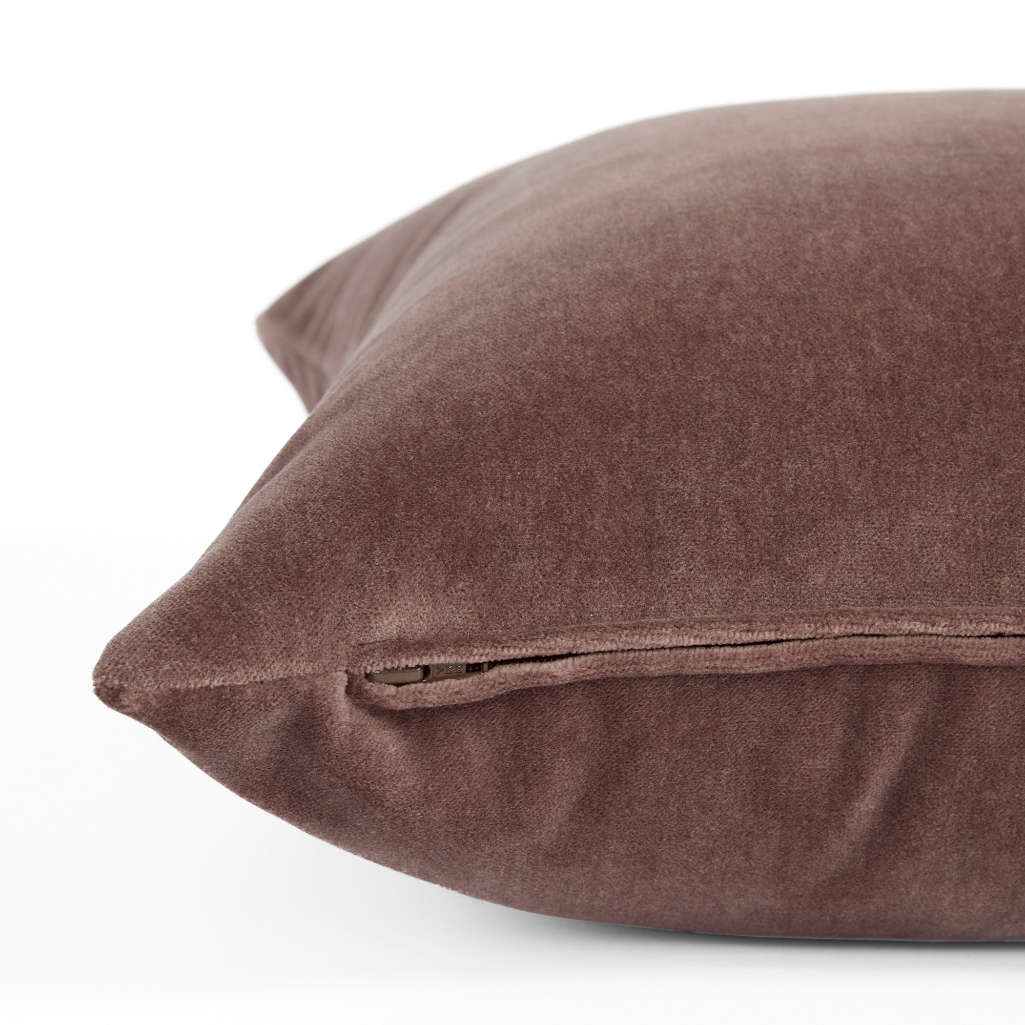 This smoky mauve velvet pillow features a soft, plush texture and a rich, nuanced tone that adds a sophisticated base for a layered pillow palette.