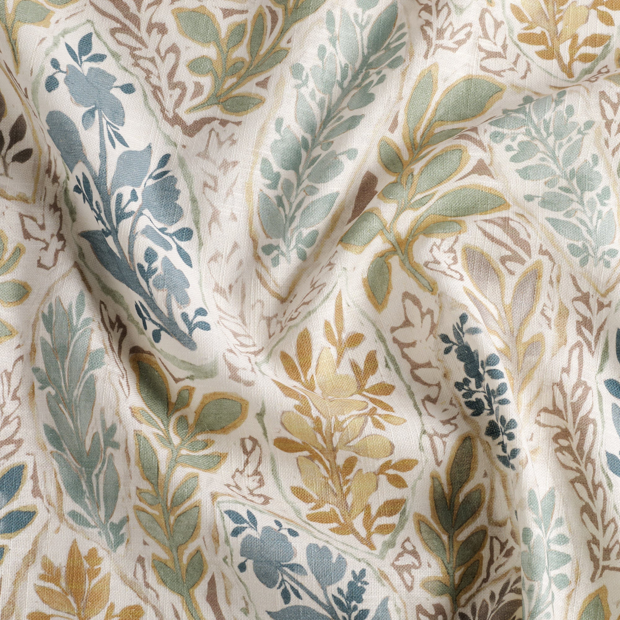 This soft, linen-blend drapery fabric is a feast for the eyes. In a stunning array of tones including aqua, sage, marigold, mauve and stone blue, the watery floral print has a hand painted effect and resembles a collection of summer garden specimens. It's a fresh and inviting accent material that will allow you to blur the lines between indoors and out.