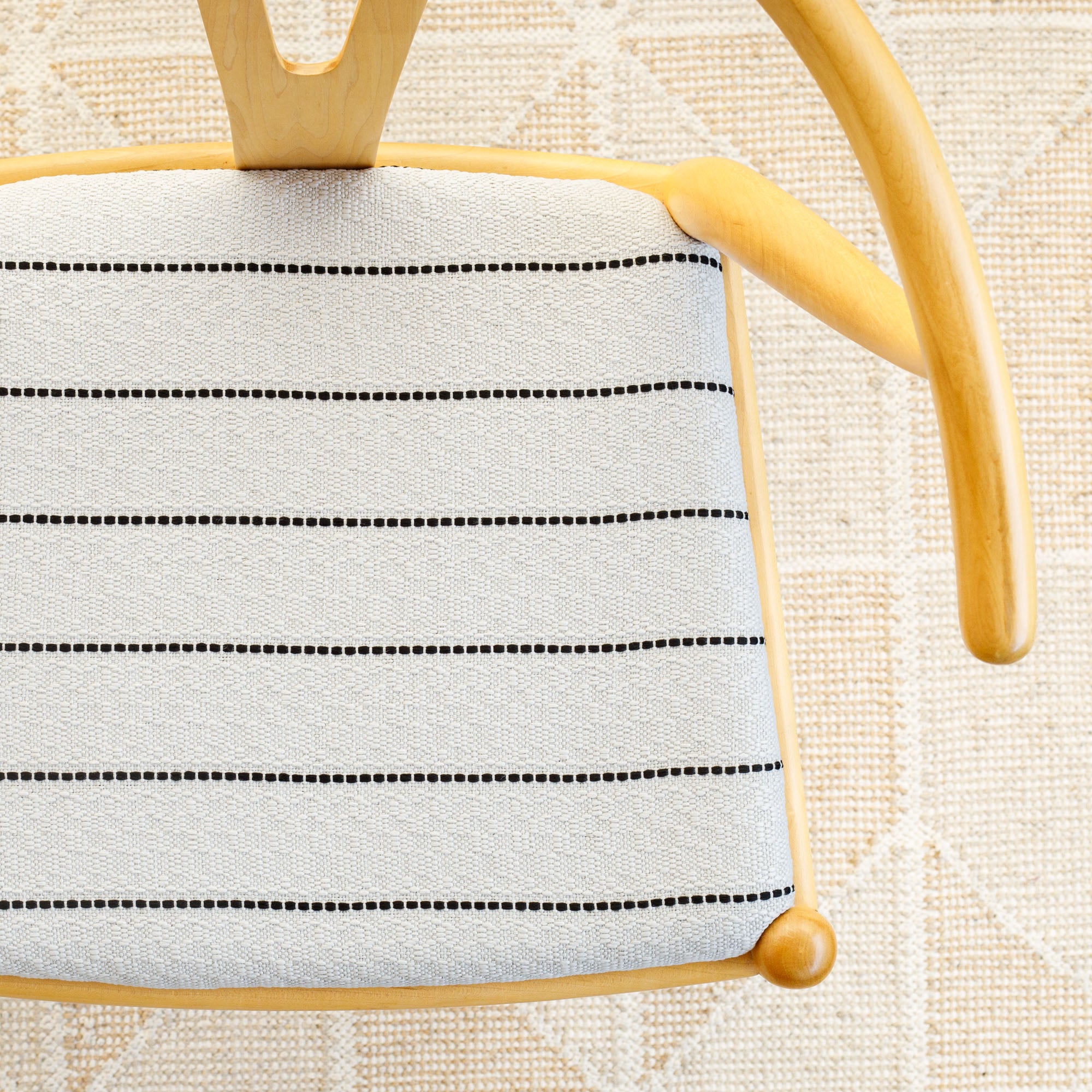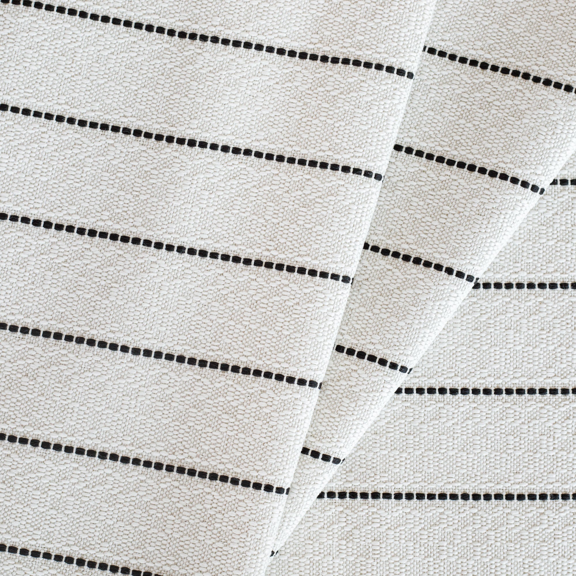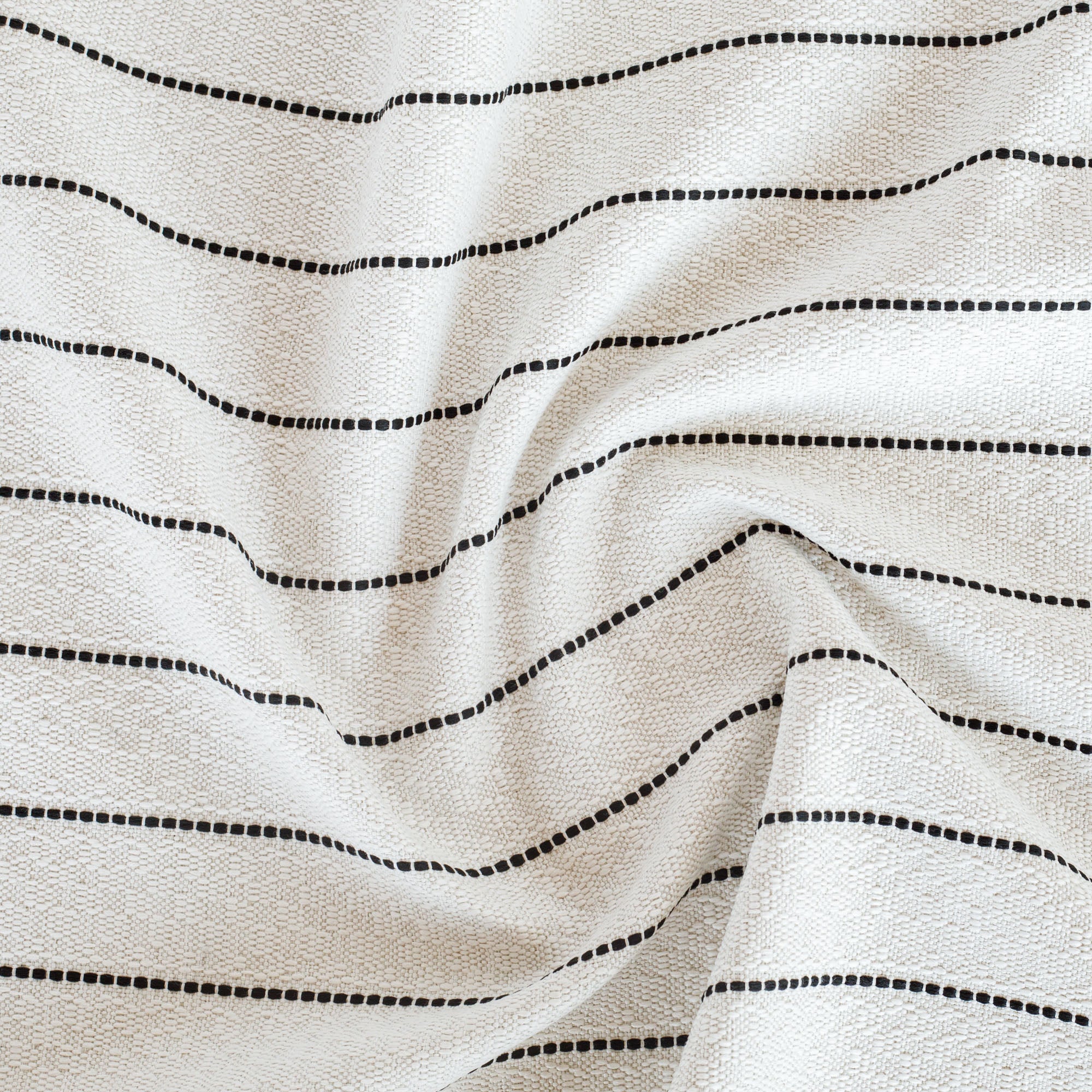 From our High Performance upholstery fabric line is this textured cream with a classic single black stripe woven in.