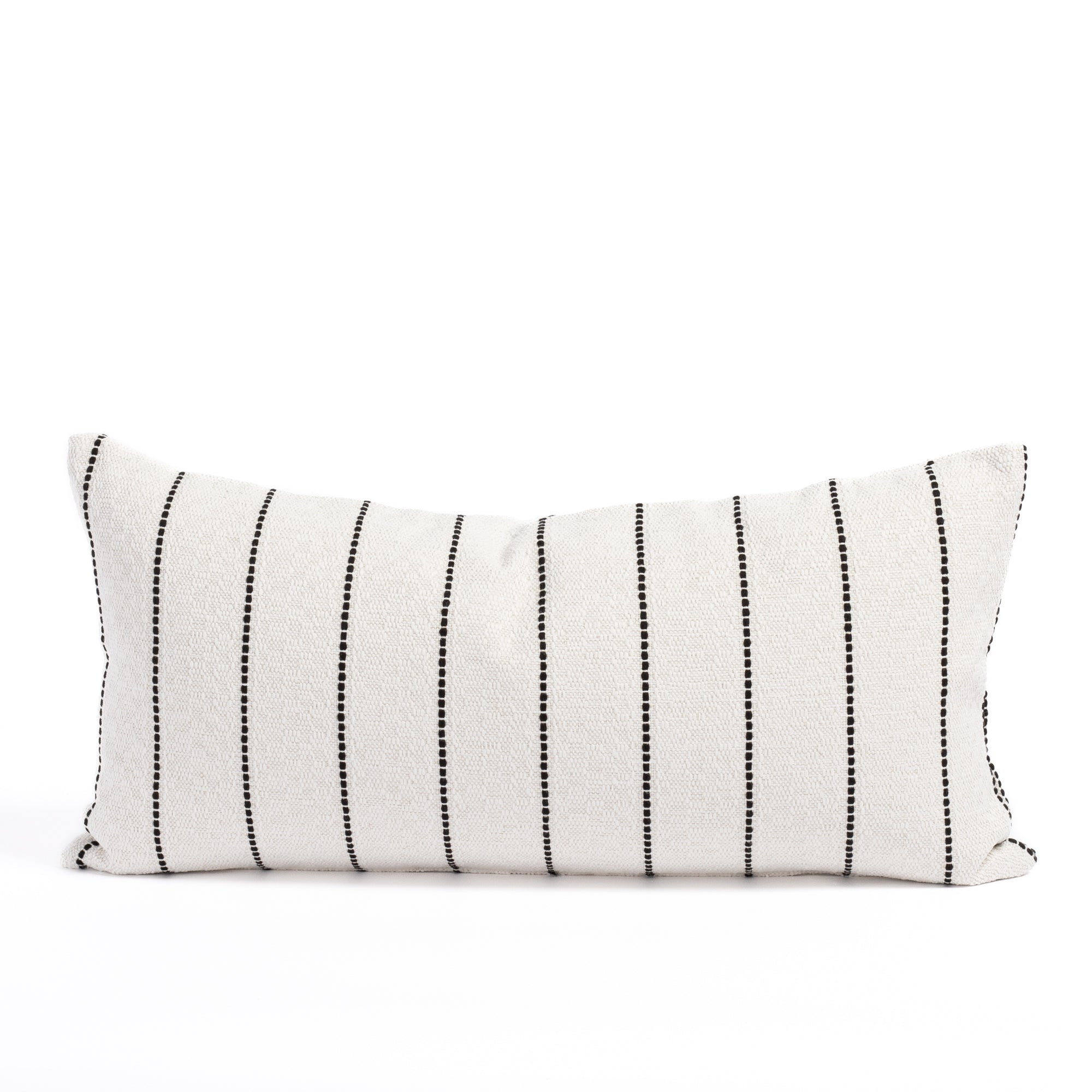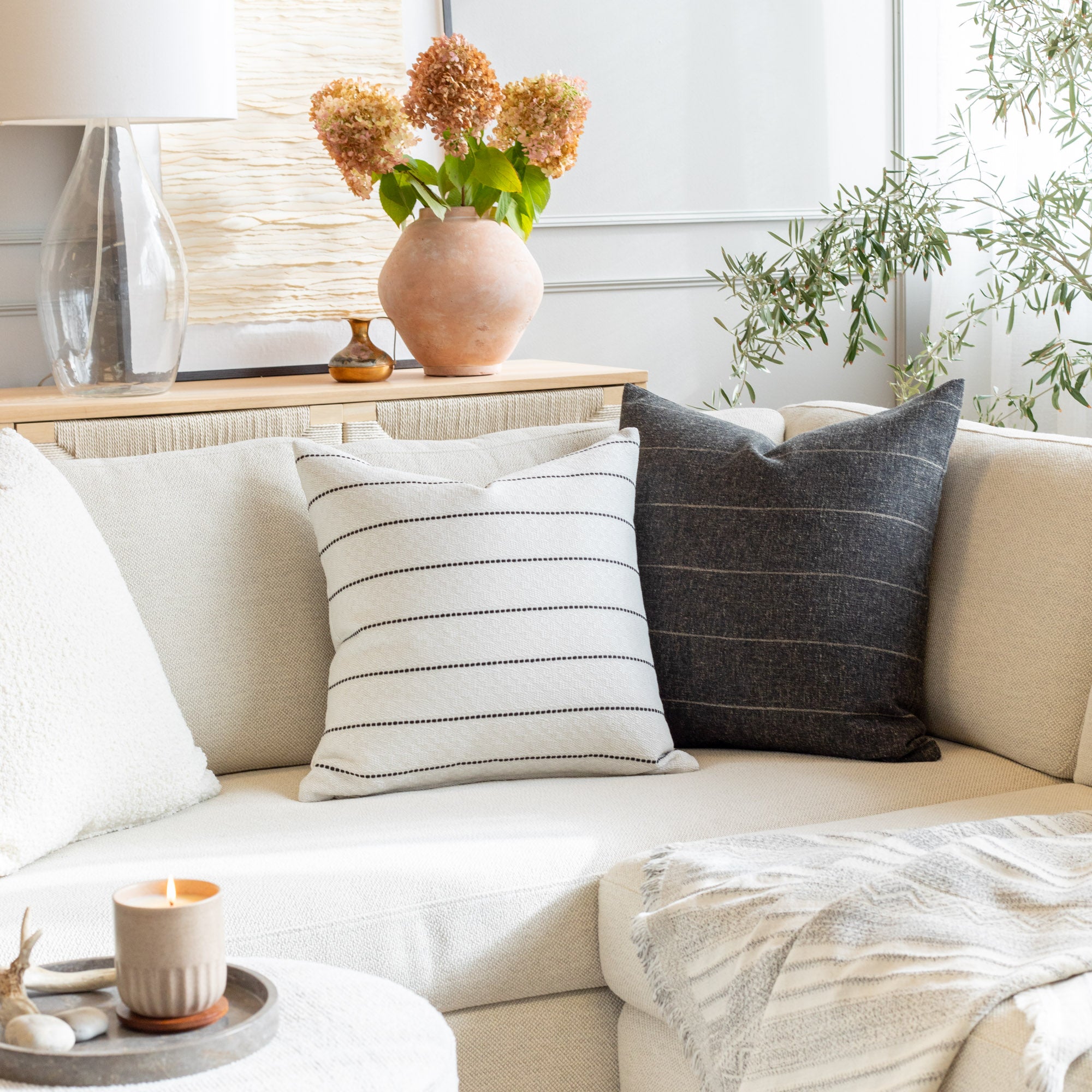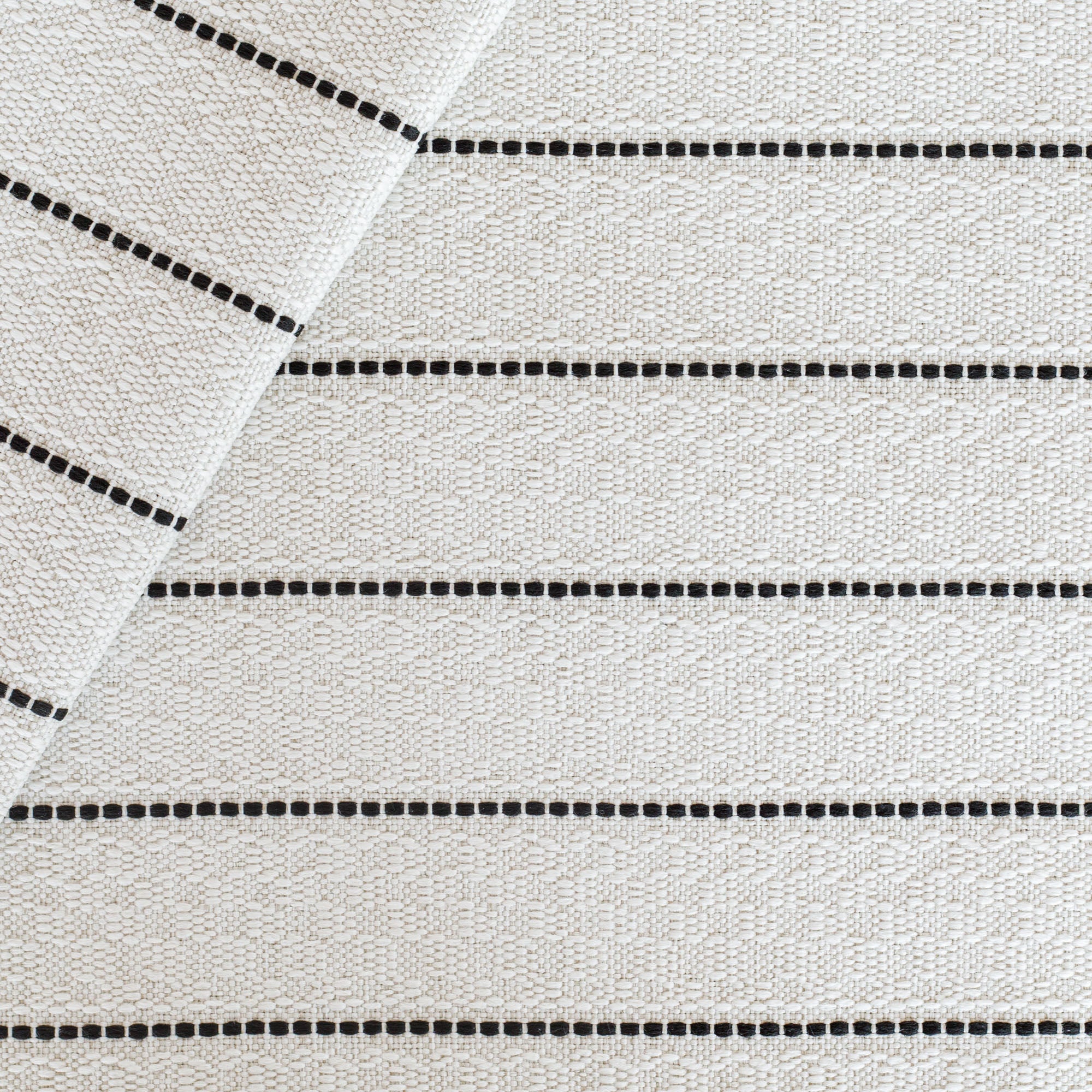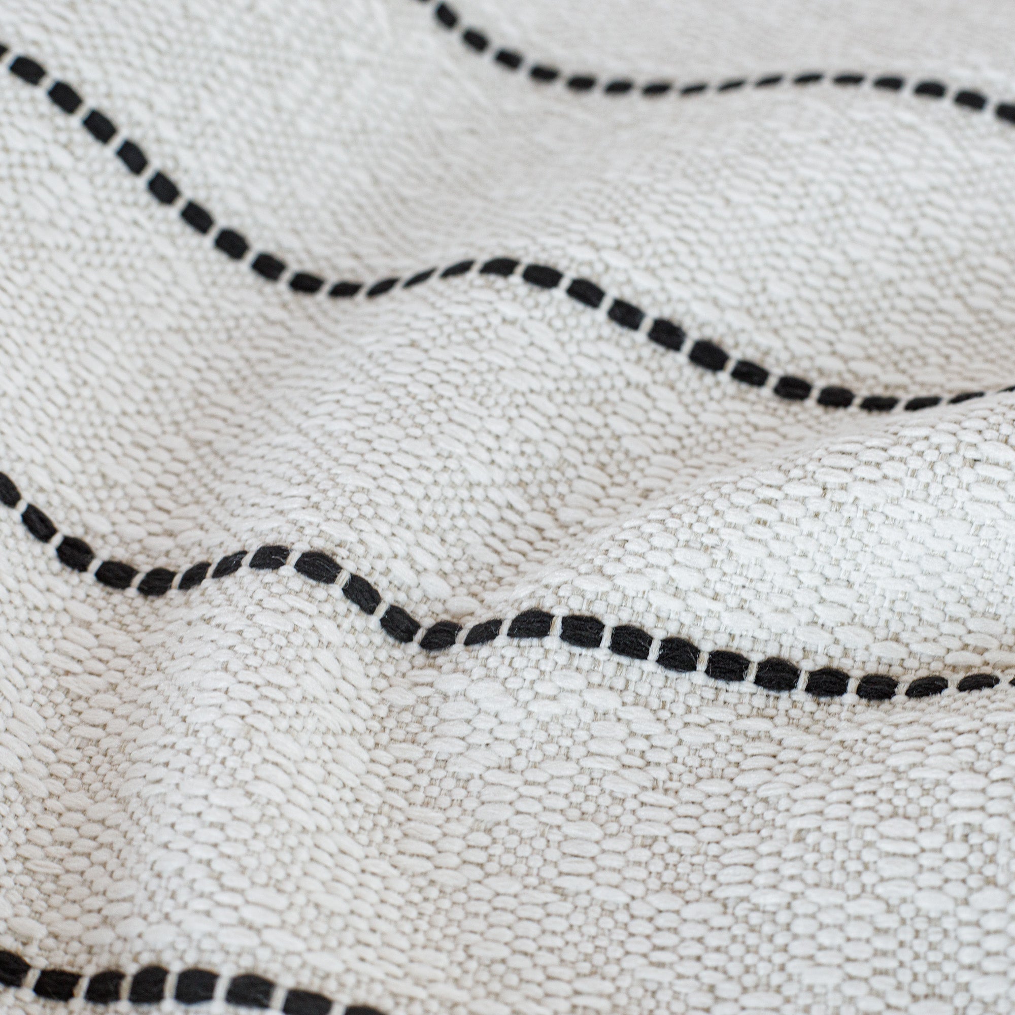 From our High Performance upholstery fabric line is this textured cream with a classic single black stripe woven in.