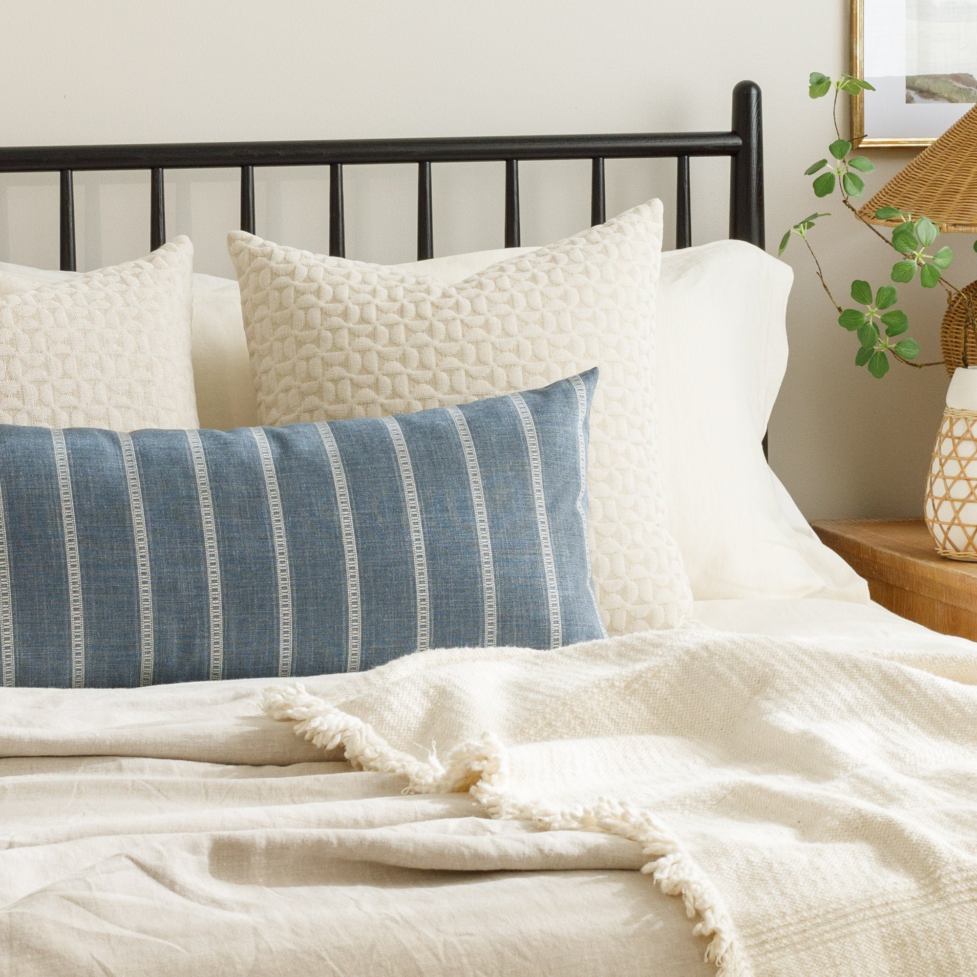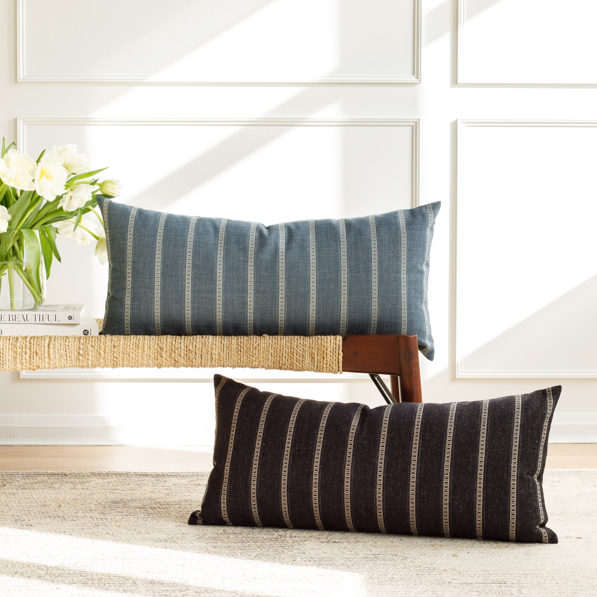 How to use it: We created these Extra Large Lumbars to work perfectly on beds, large sofas or banquette seating. Depending on your bed size, simply use one on its own, or layer it in front of a pair of coordinating 22x22 or 20x20 pillows to create an easy, tied together look.