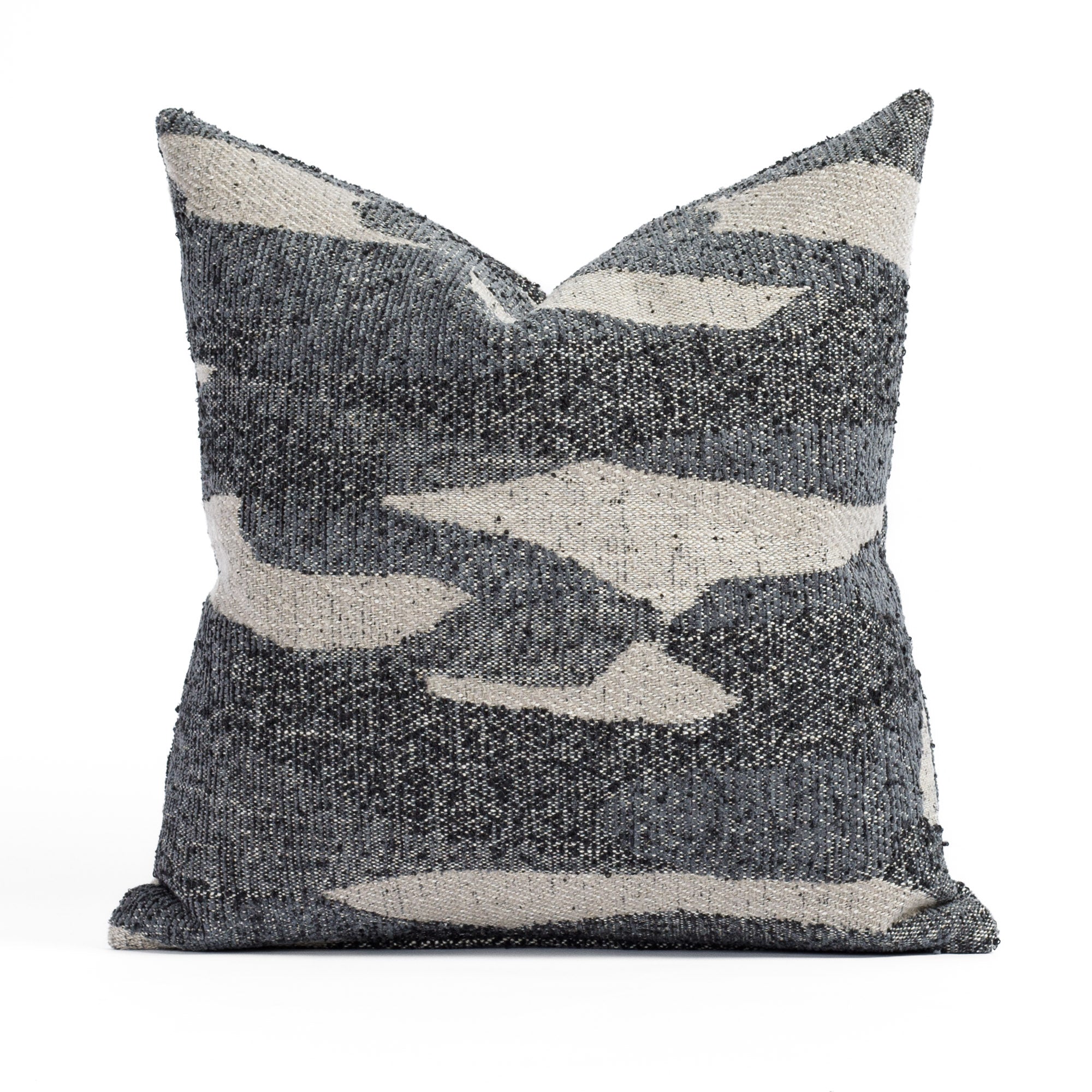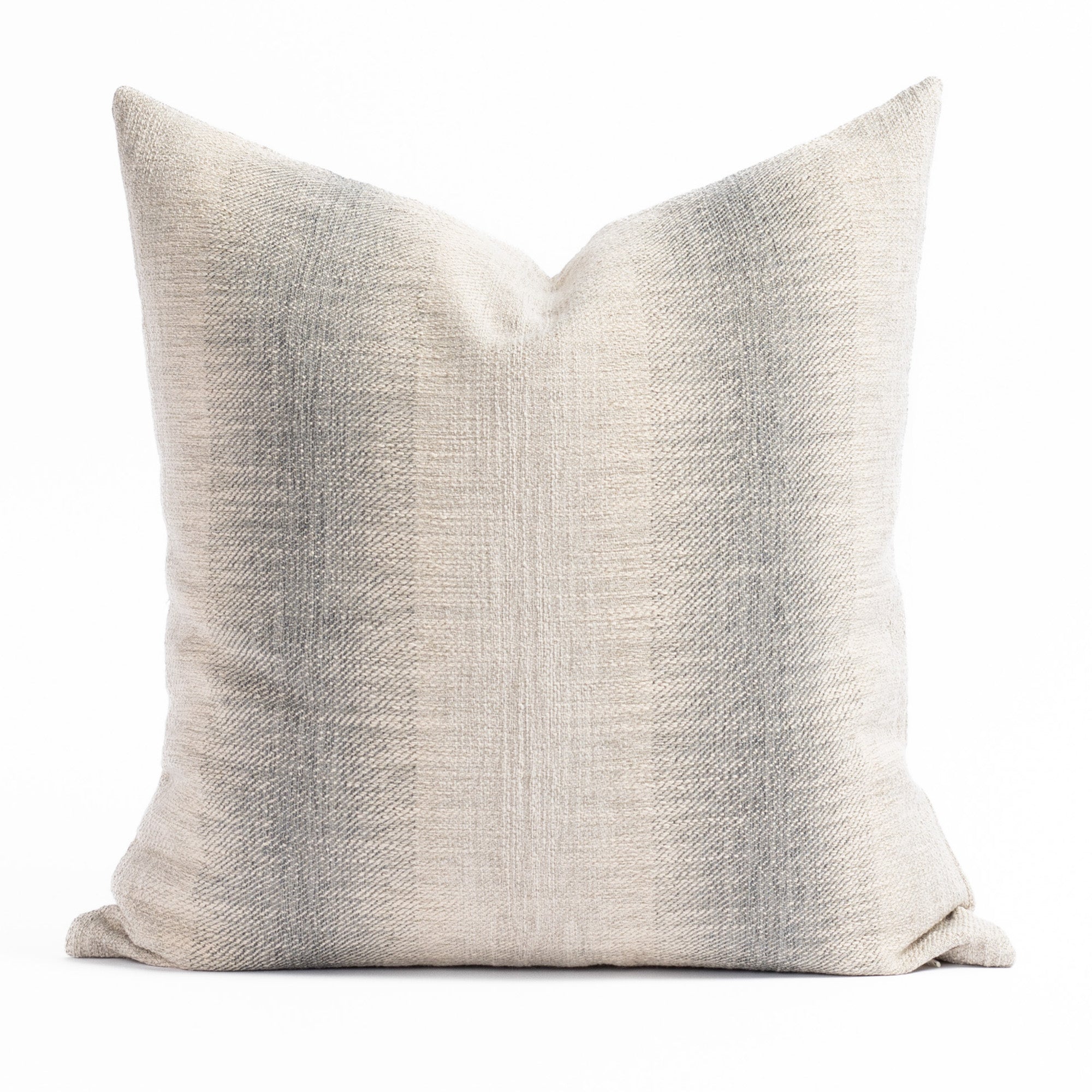 This versatile pillow features a woven dashed pattern in a breezy palette of stone blue and greige. It offers an updated take on a classic stripe and will deliver a layer of simple pattern with a coastal meets organic modern vibe.