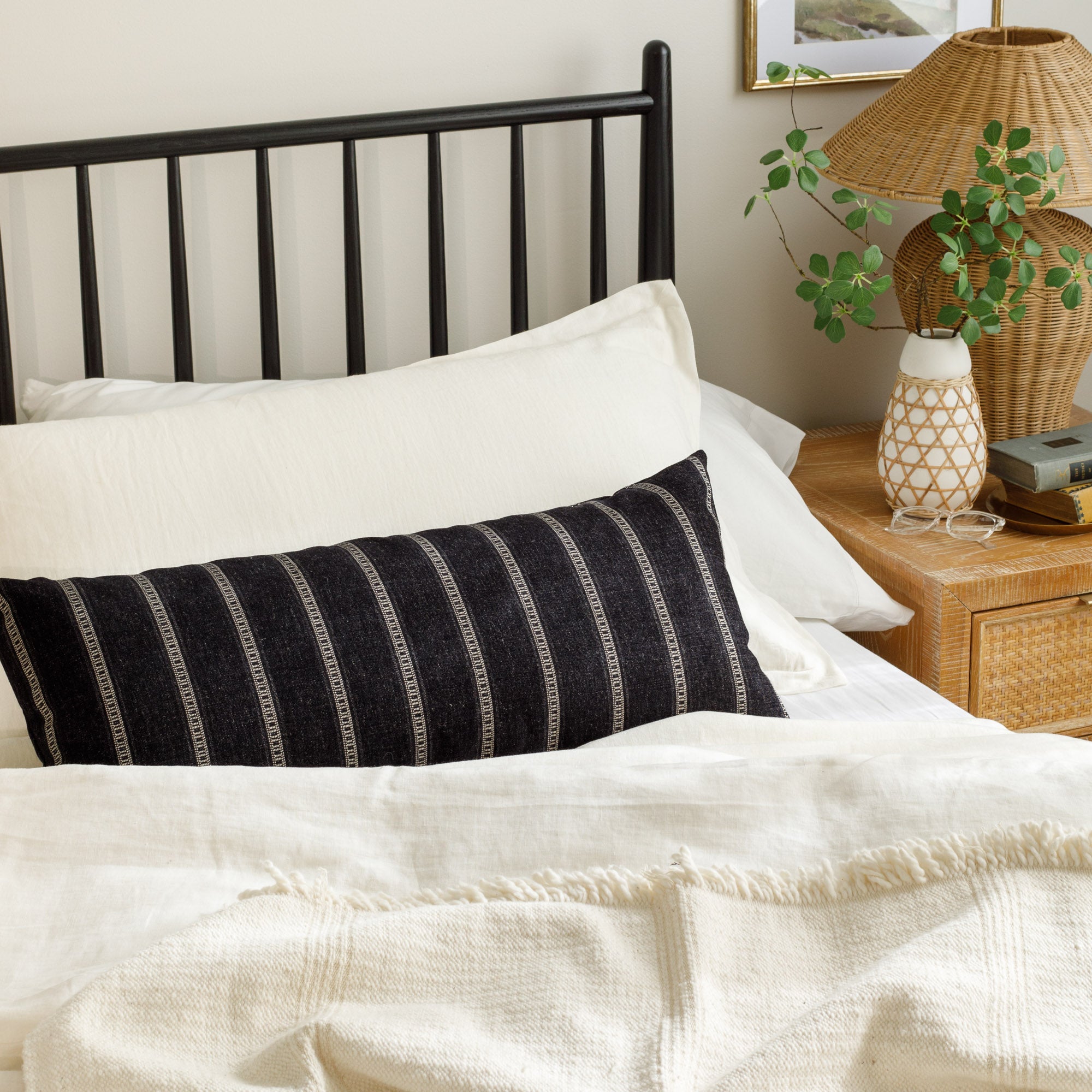 Add a dash of contemporary whimsy to your home with this scene-stealing pillow. Offering the perfect blend of cozy texture and modern character, this off-white and black item features a variegated polka-dot pattern that seems to dances across the surface. Whether it's the star of the show or added in as a layer this pillow will deliver a vibe that is both chic and playful.