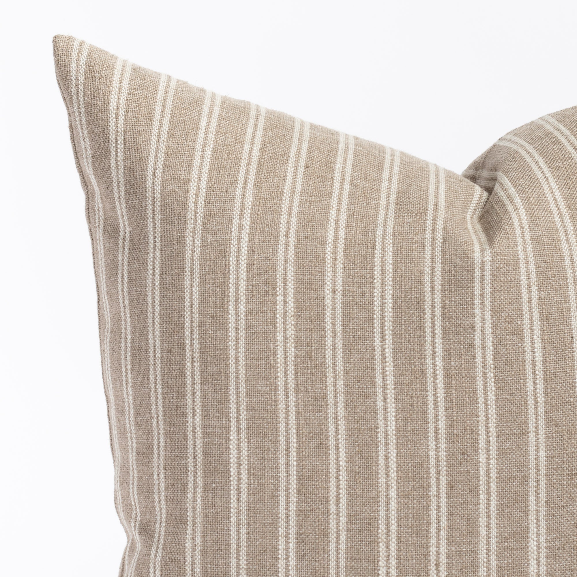 This multi-purpose, linen-blend fabric features a small-scale horizontal stripe in a soft bark-brown and oatmeal colourway. It has a lightweight but sturdy hand-feel, making it applicable to both window treatments and upholstery. With a luxe-meets-earthy aesthetic and organic texture, this beautiful material exudes an effortless Belgian farmhouse style.