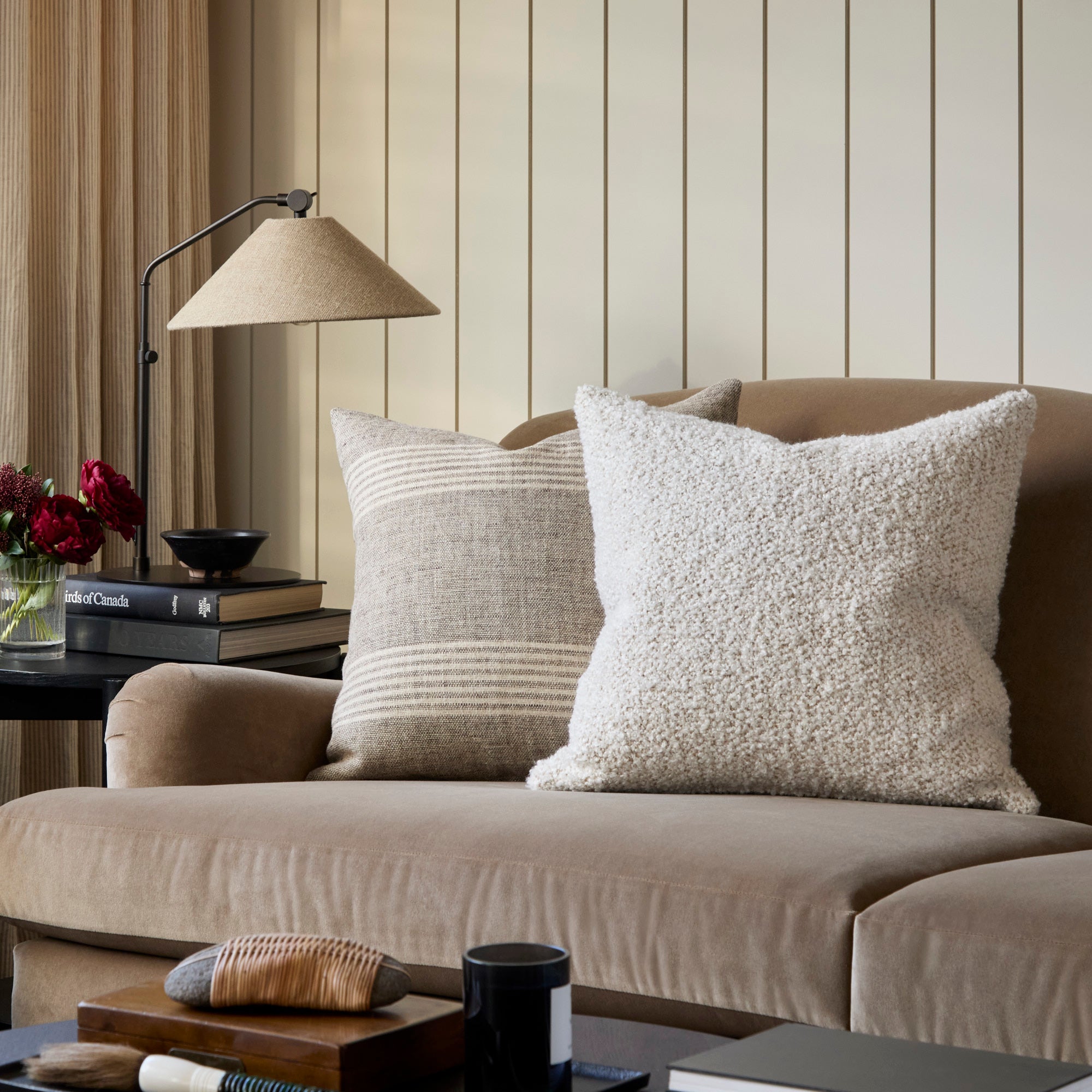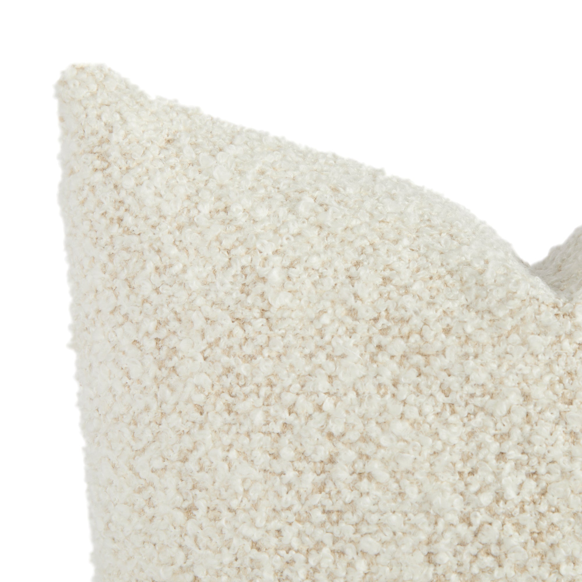 Amp up the texture with this wooly boucle pillow that will invite you to sink right in. With a dimensional cream and oatmeal tone, the loopy material has an exaggerated weave that is ultra soft to the touch. This beautiful pillow is cozy, organic and luxurious all at once and is sure to add layers of warmth to your sofa, bed or nook.