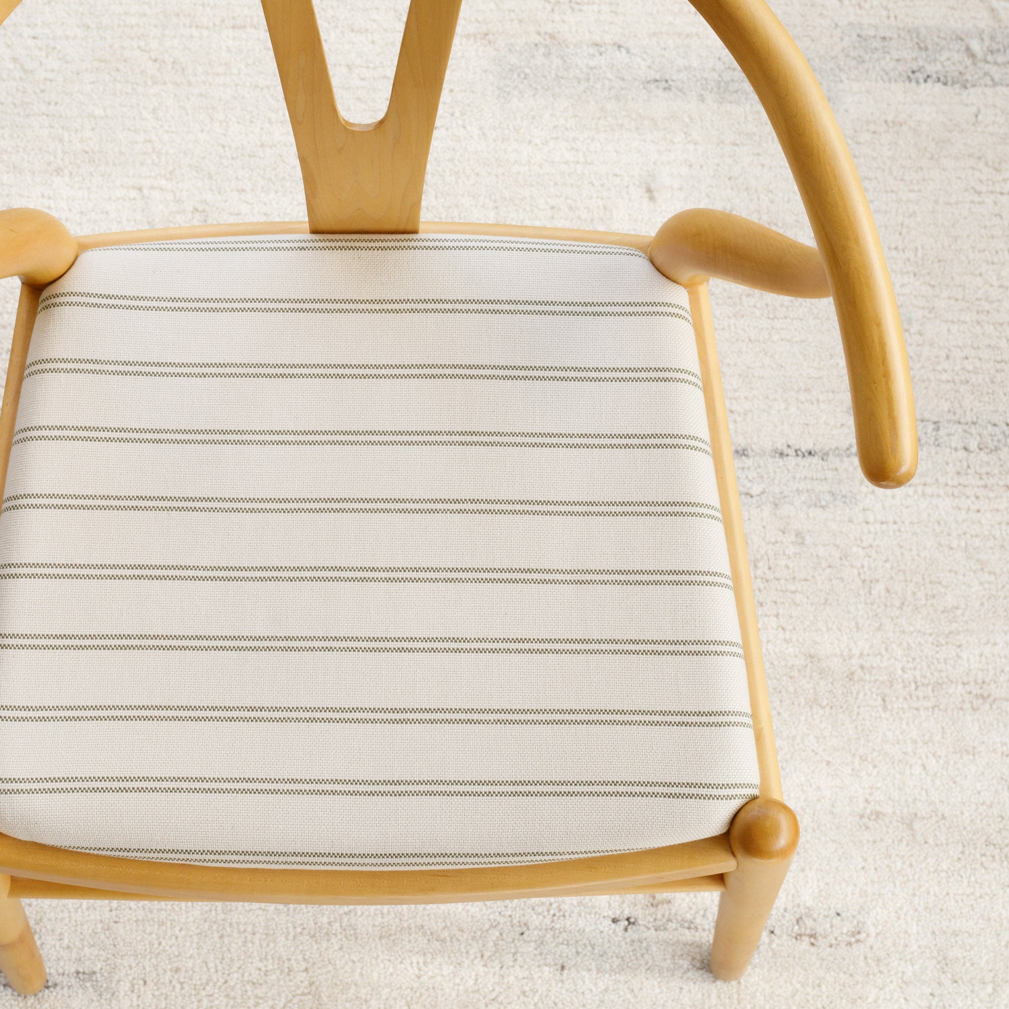 This high-performance upholstery fabric features moss green ticking stripes on an oatmeal base. It’s a classic and versatile material that offers a timeless and tailored look.