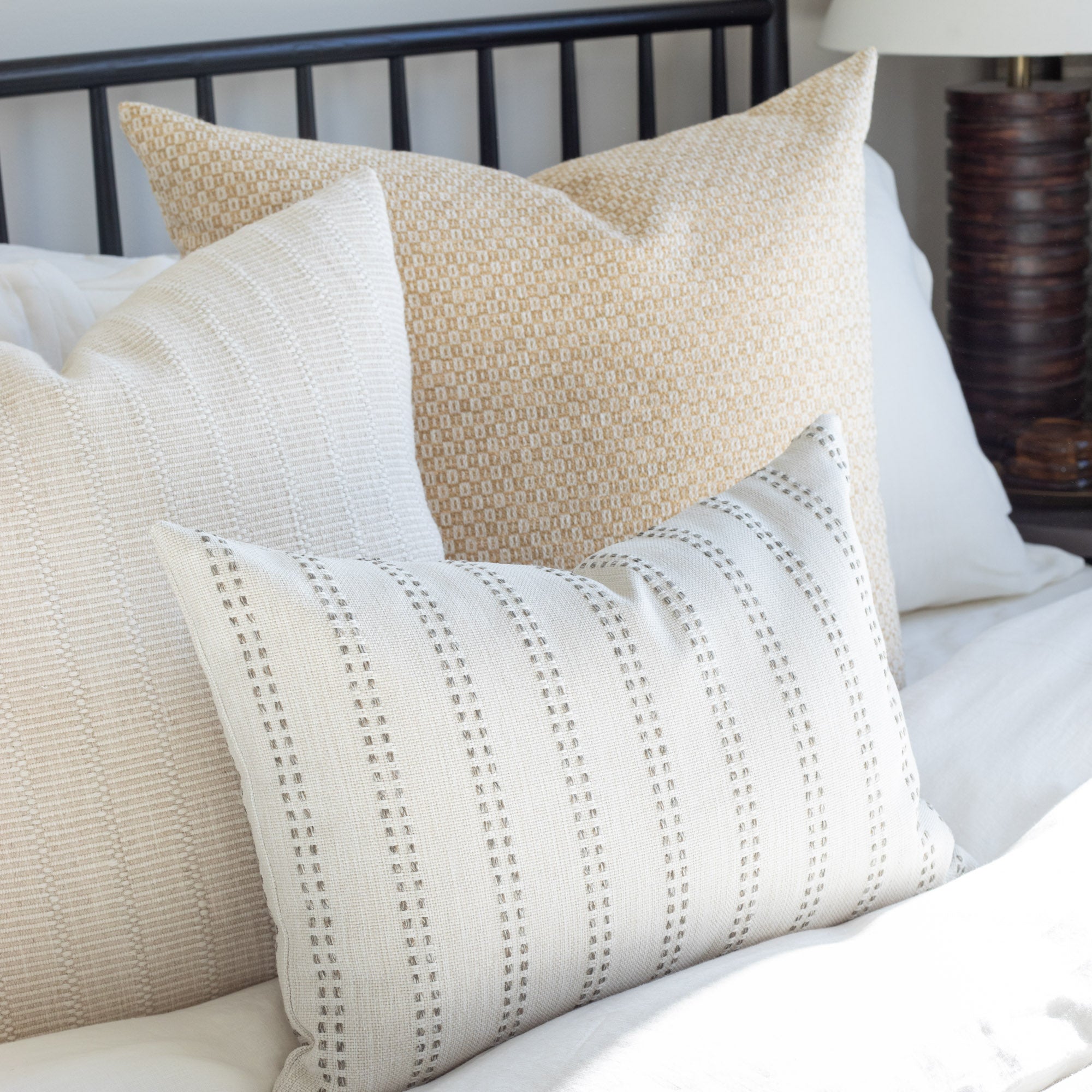 How to use it: This lumbar size is extremely versatile and works perfectly on its own nestled into an occasional chair or to mix up scales when paired with other 20x20 or 22x22 decorative pillows on a sofa. On a bed, this size works well when placed in front of a larger square pillow or centred between a pair.