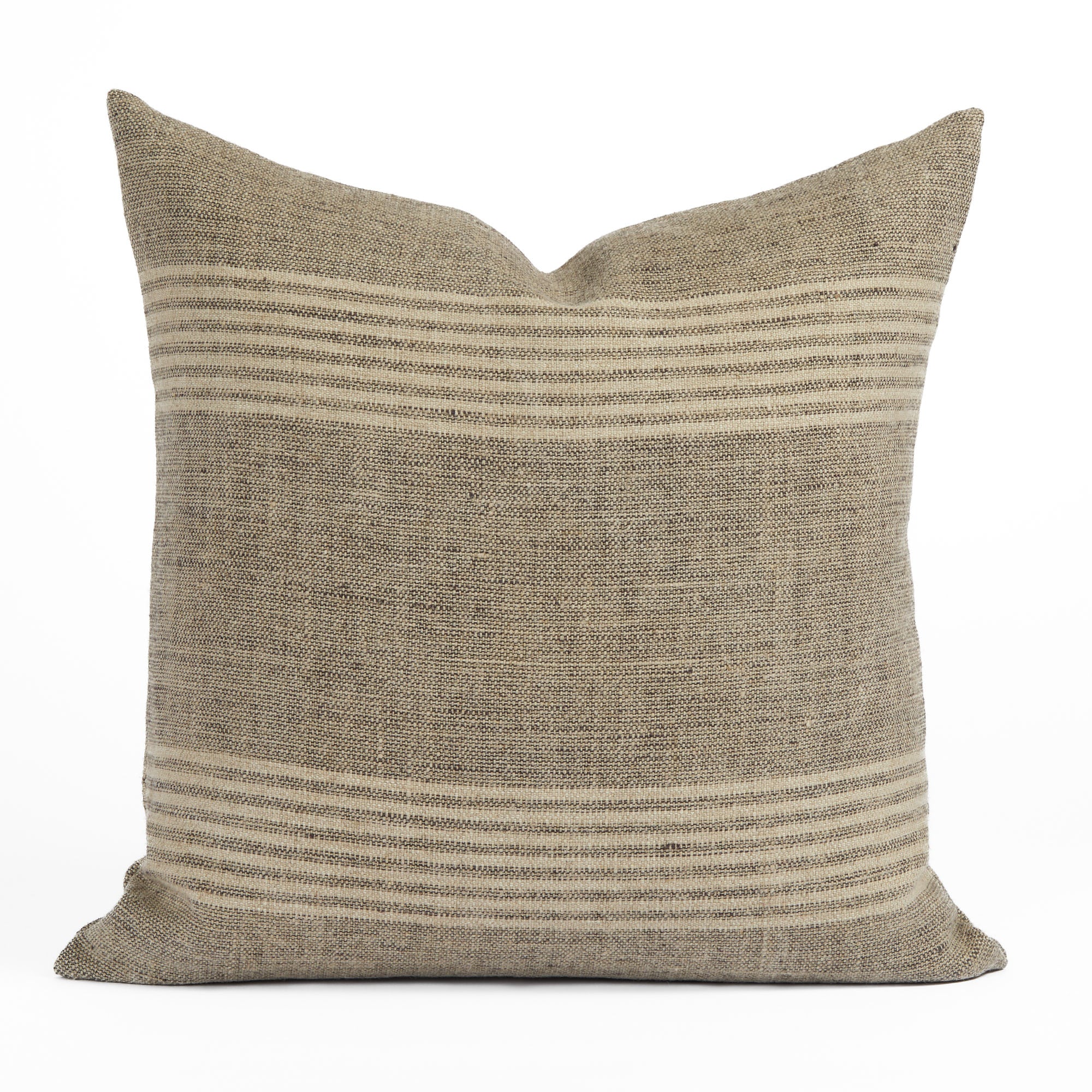This cozy 100% linen pillow, in shades of natural tan and faded black, has all the classic charm of a vintage textile. Equal parts simple and sumptuous, the chunky natural fibres have a weighty weave and occasional variation in tone and texture. Layered onto your sofa or bed, this stunning pillow will bring all the casual and earthy elegance of a country manor.