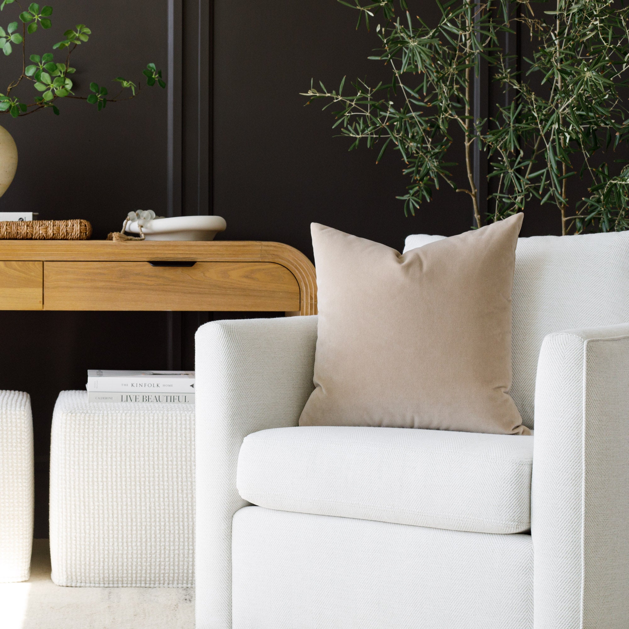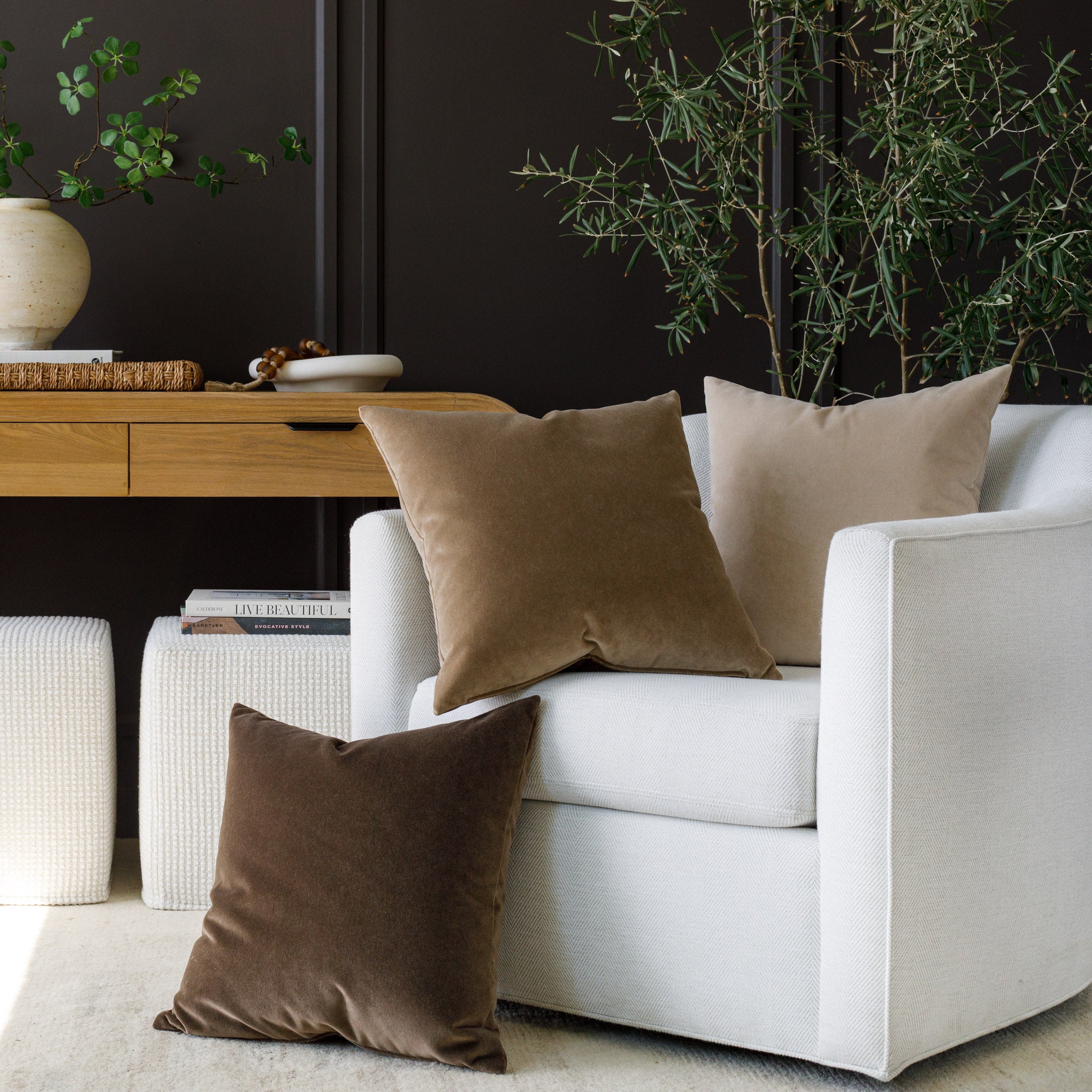 Sophisticated, earthy and stunning, this velvet pillow in the perfect mid-toned brown has a hearty texture and inviting colour. Made with fabric from our High Performance Fabric, the effortlessly elegant feel of this calming neutral is cozy and completely livable. Luxurious and timeless, consider it a foundational element to an organic modern aesthetic.